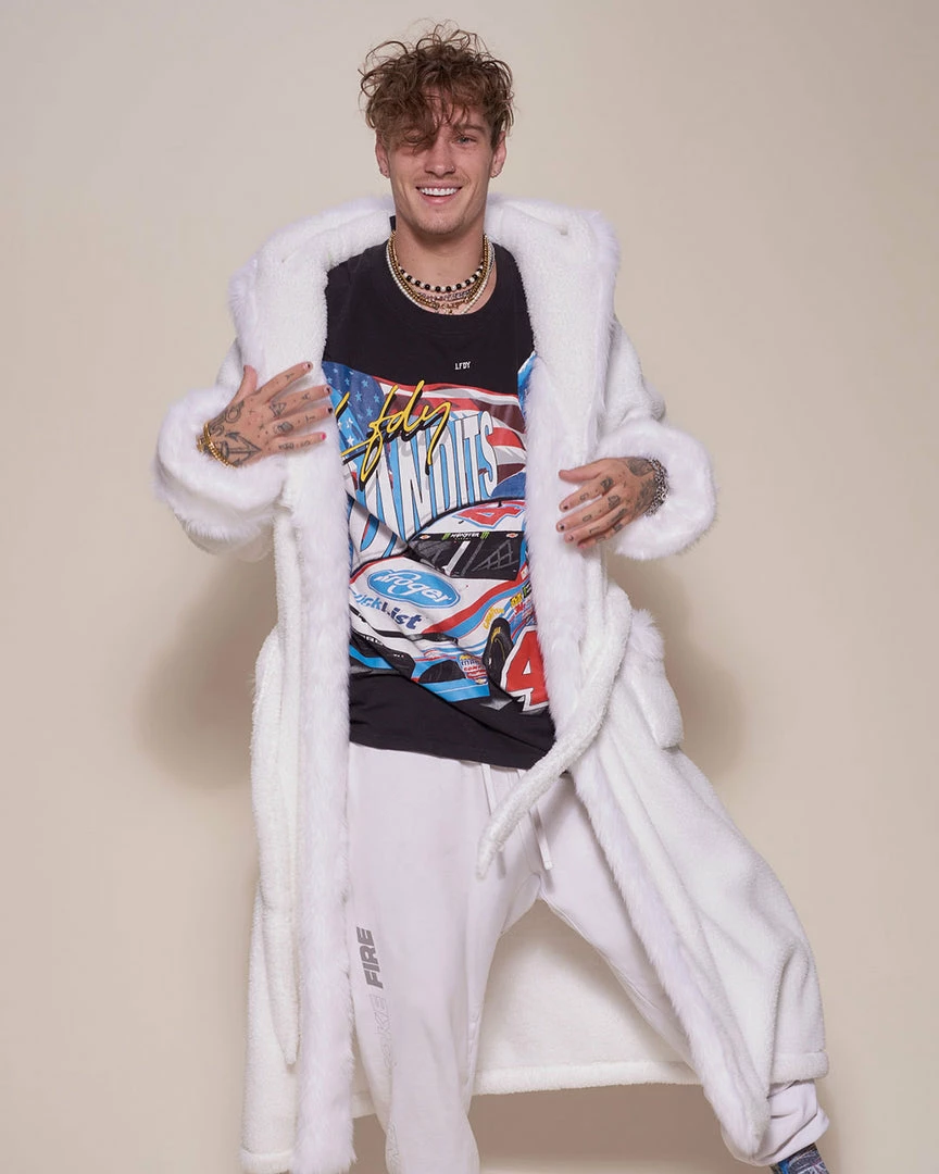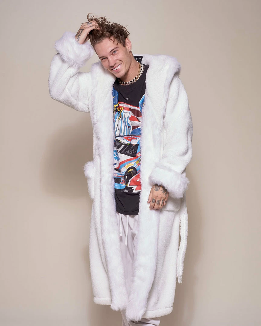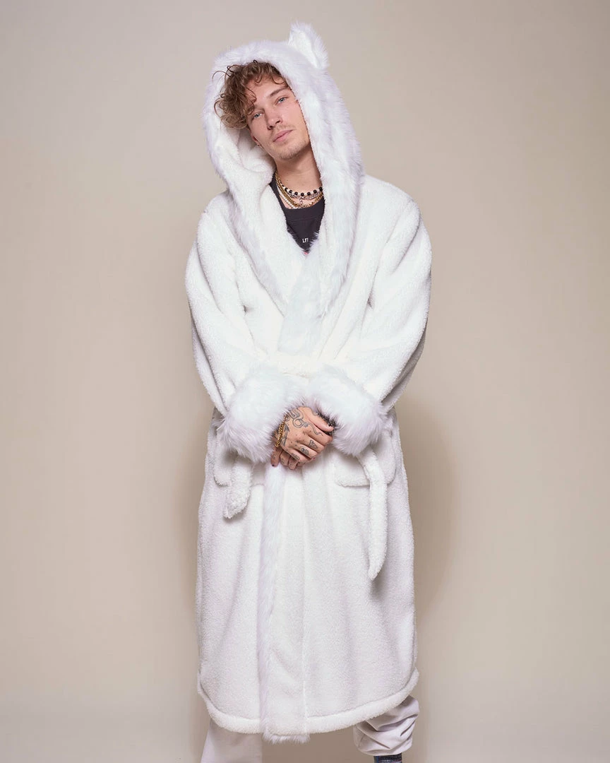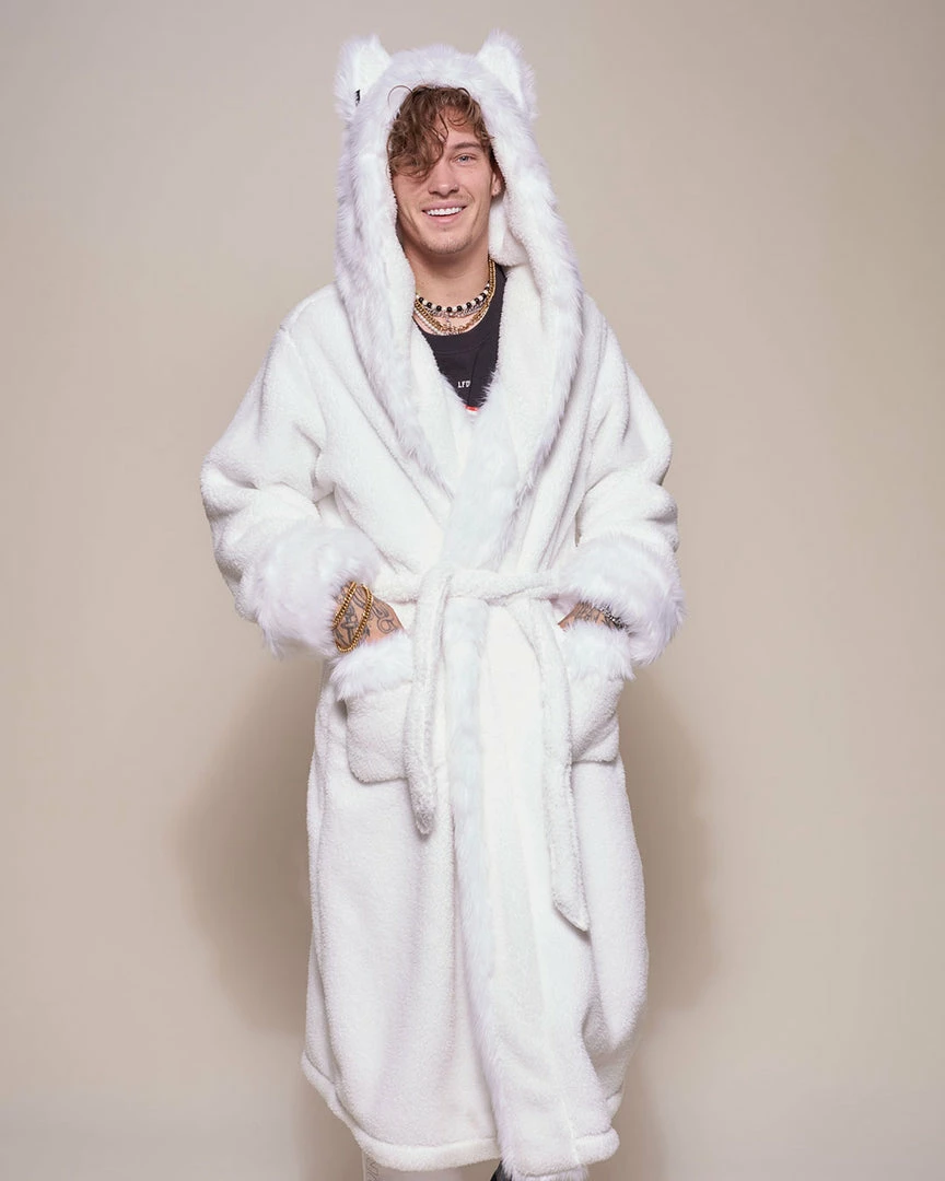 Snuggle up in our Arctic Wolf Classic Faux Fur Robe for men – a hot look with an ultra-cool feel.