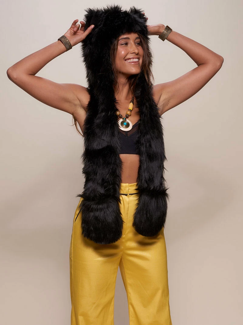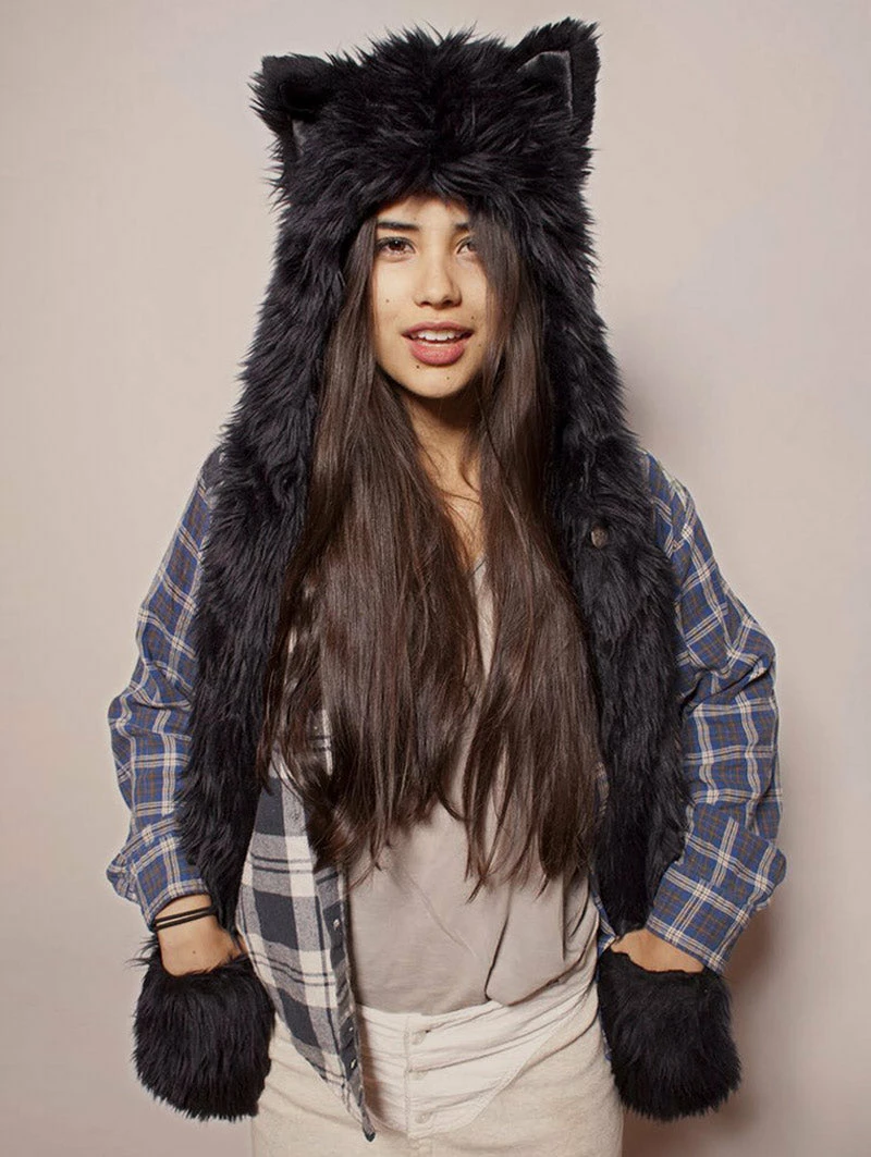 Speak your truth at your next pack gathering in this Black Wolf Faux Fur SpiritHood for women! The adorable ears and vibrant faux fur will have you howling to the music while looking chill AF in a handmade SpiritHood. Keep your faux fur hood ready to wear year-round and look fierce at music festivals – and prowling the streets – in every season!