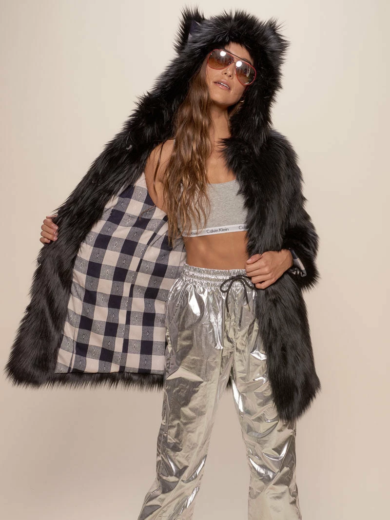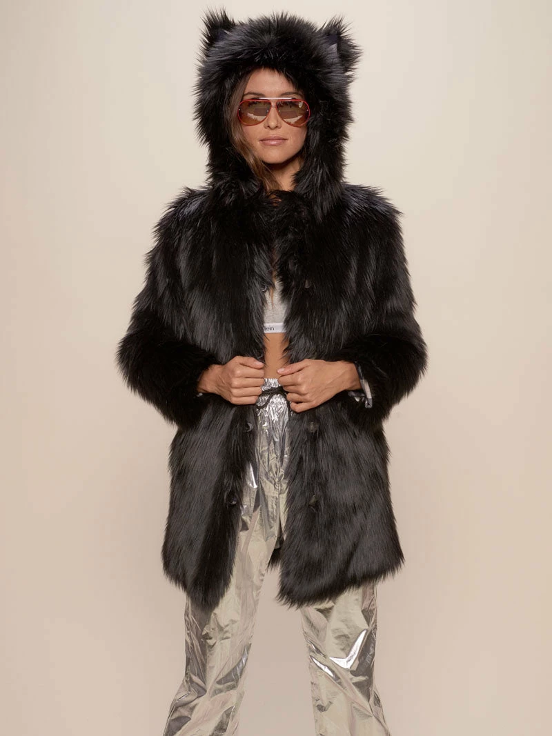 You’ll be ready for all your adventuring this season when you drape yourself in the cool warmth of a Black Wolf Faux Fur Classic Coat for women. Pair our faux fur coat with any outfit, whether you’re off to run errands or struttin’ into a club. Your style will be oh so cool all year round, so keep this faux fur coat close!