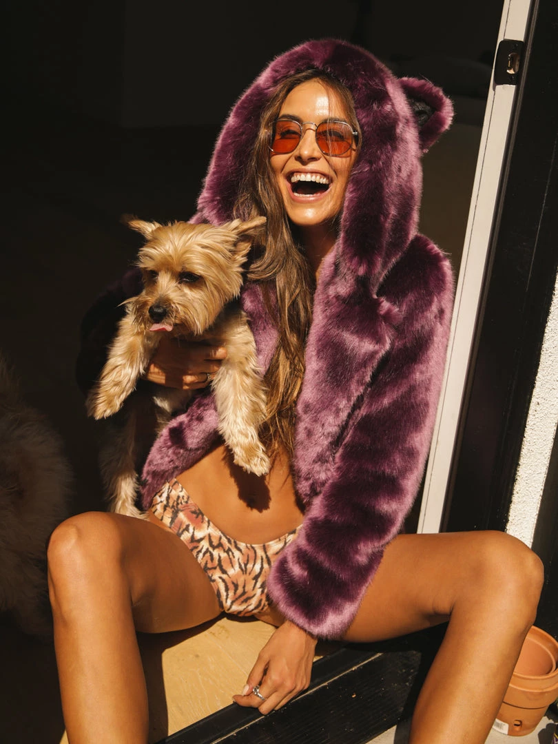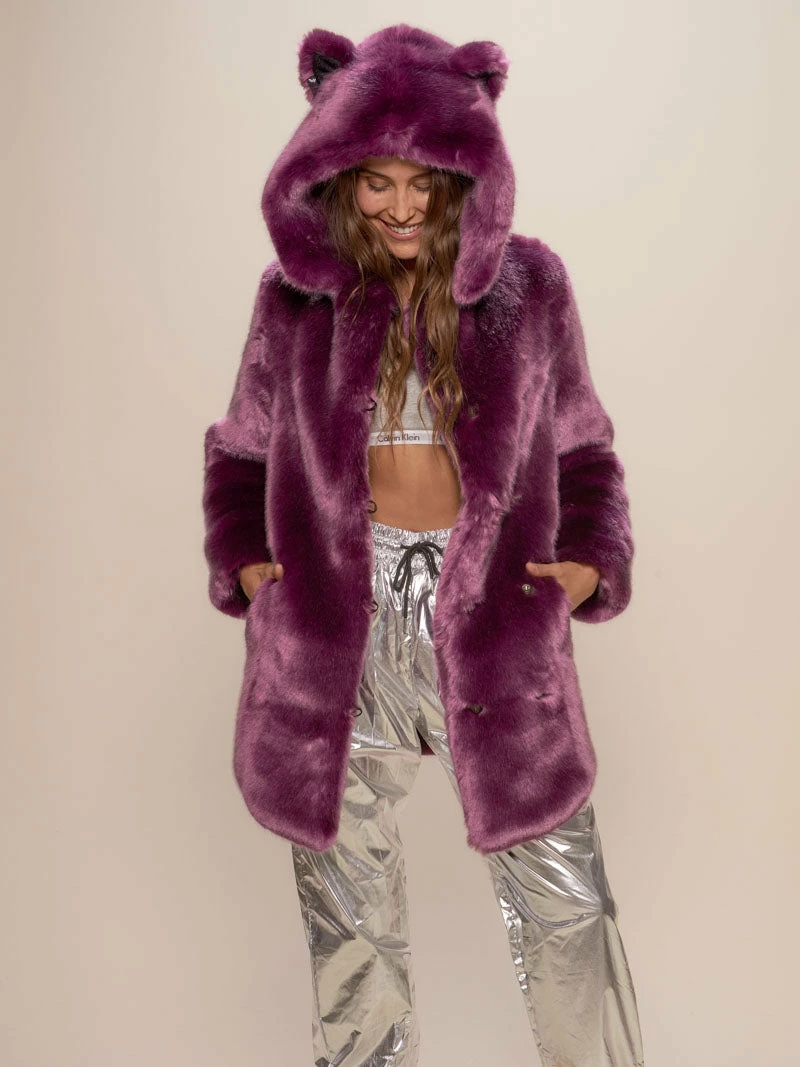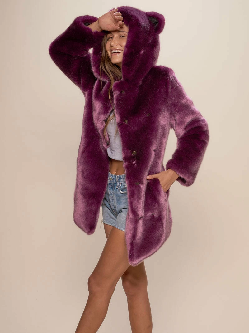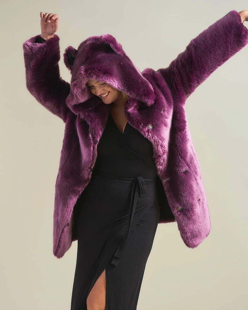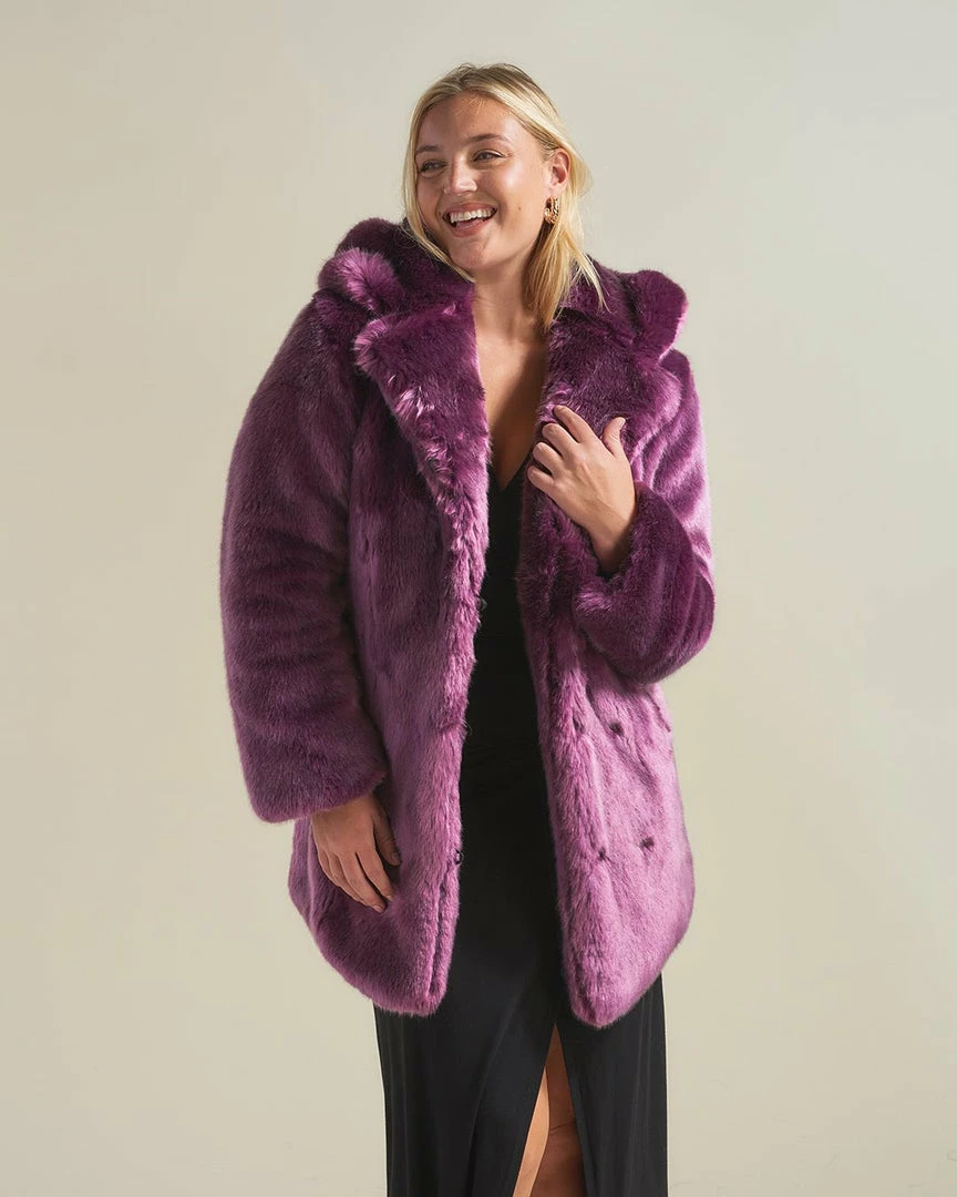 Bring color into every day with the women’s Lavender Wolf Classic Faux Fur Coat made with ultra-soft Tissavel. The cozy hood with ears keeps it playful, while the double-breasted fit says your fashion is on point. Lavender is the perfect color for every season and will keep you looking cool all year long.