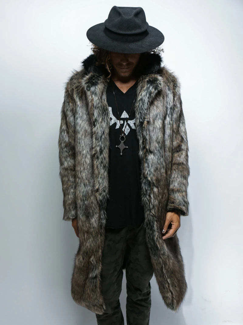 SpiritHoods LLC Dire Wolf Faux Fur Calf Length Coat | Men’s NIGHT TIME STYLE