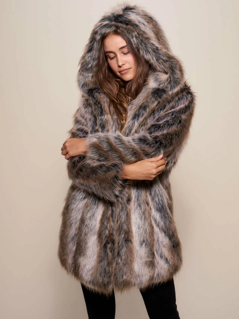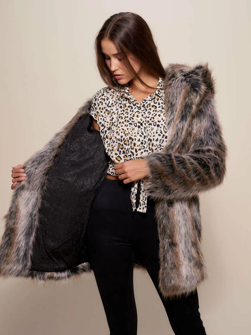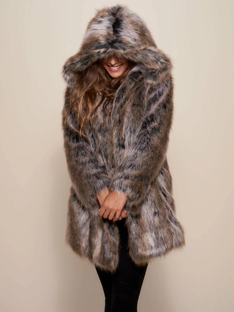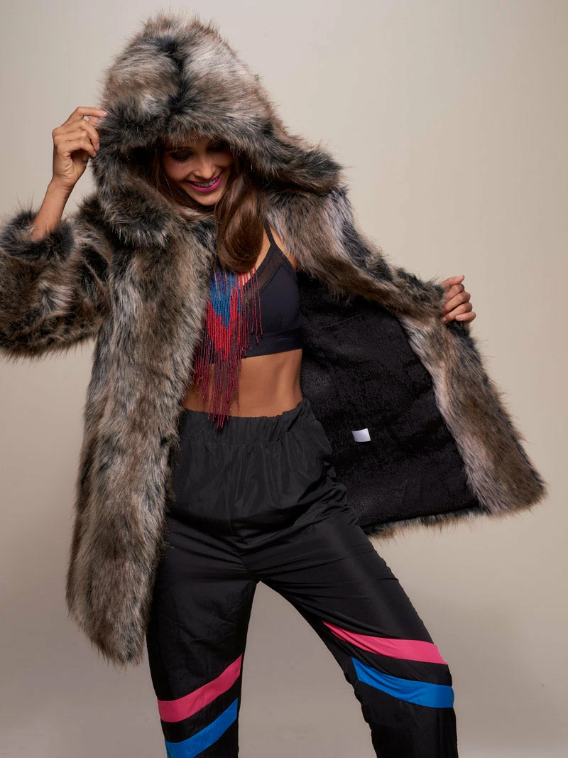 Ready to prowl the night in style? Grab your hooded Grey Wolf faux fur coat for women today!