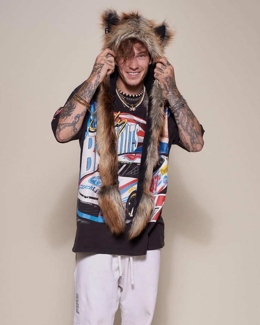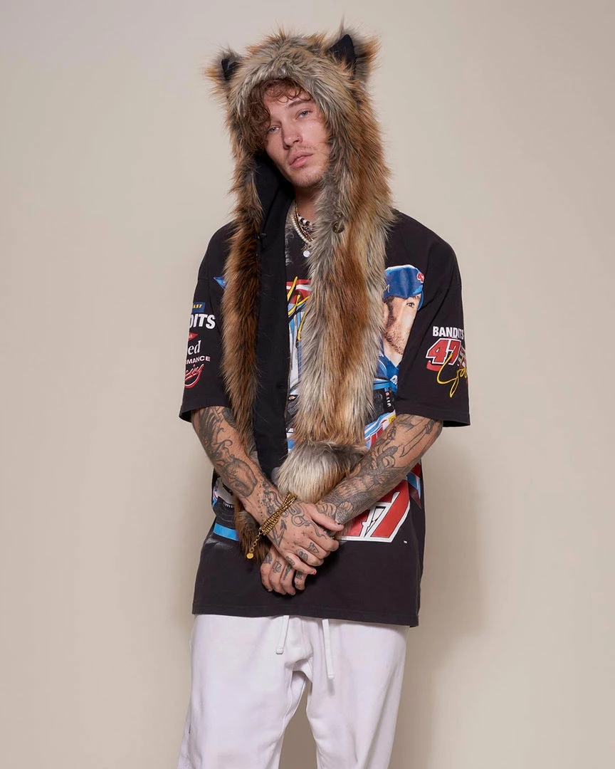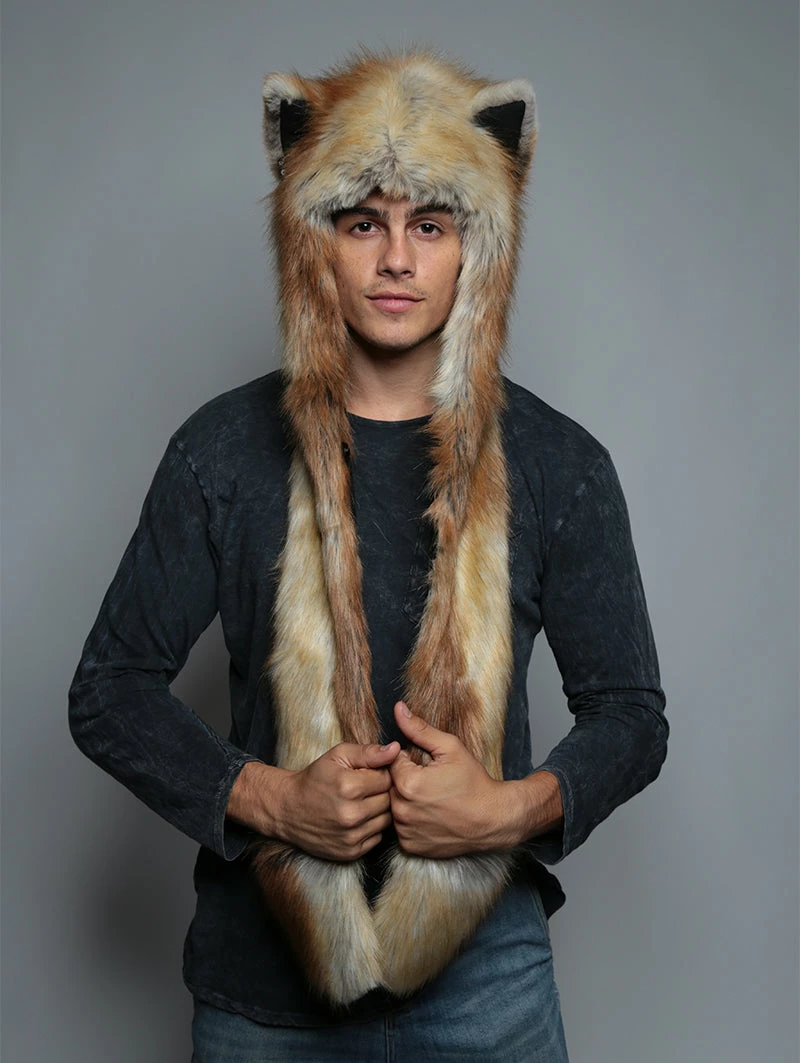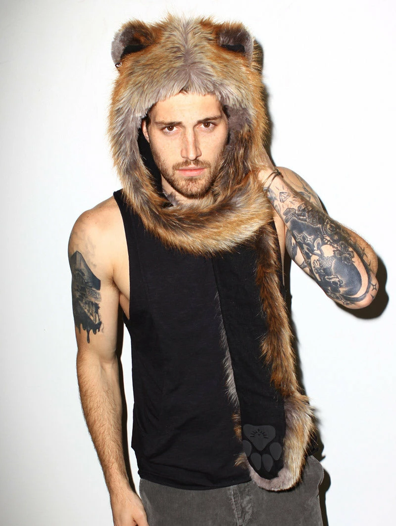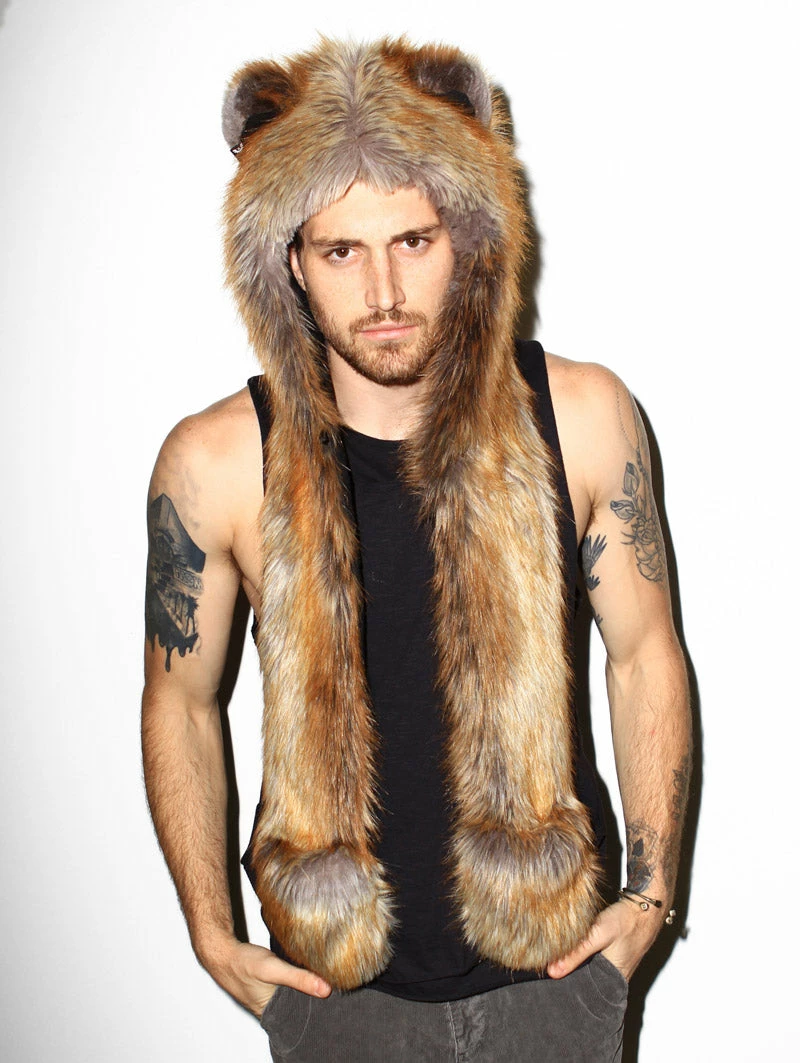 Step out with your pack and prowl the cafes and clubs looking fierce AF – and oh so cool – in this Red Fox Faux Fur SpiritHood for men! Your paws will stay warm, and your look will be totally chill in this plush hood with custom buttons and adorable ears. Go faux and stay animal-friendly with fashion that is on point.
