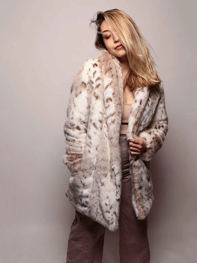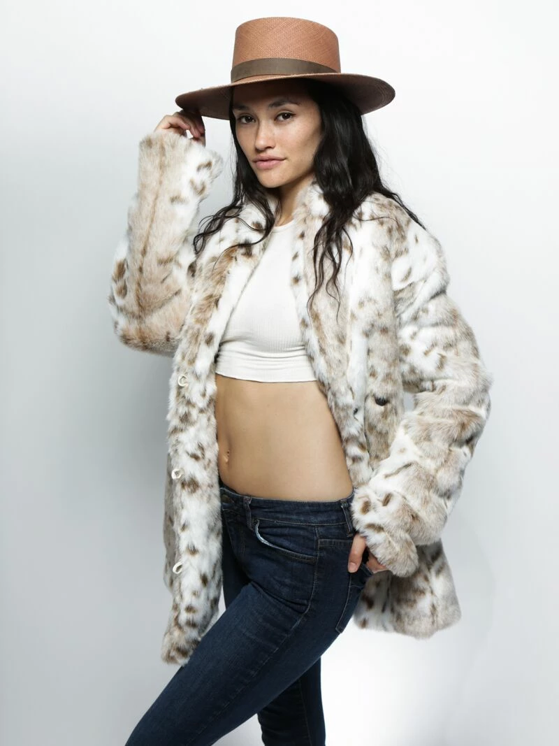 Make every season your most fashionable wearing this faux fur coat for women featuring a Siberian Snow Leopard design!