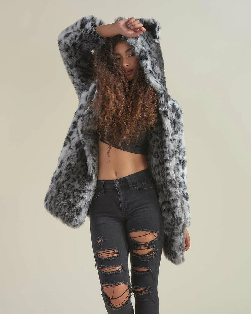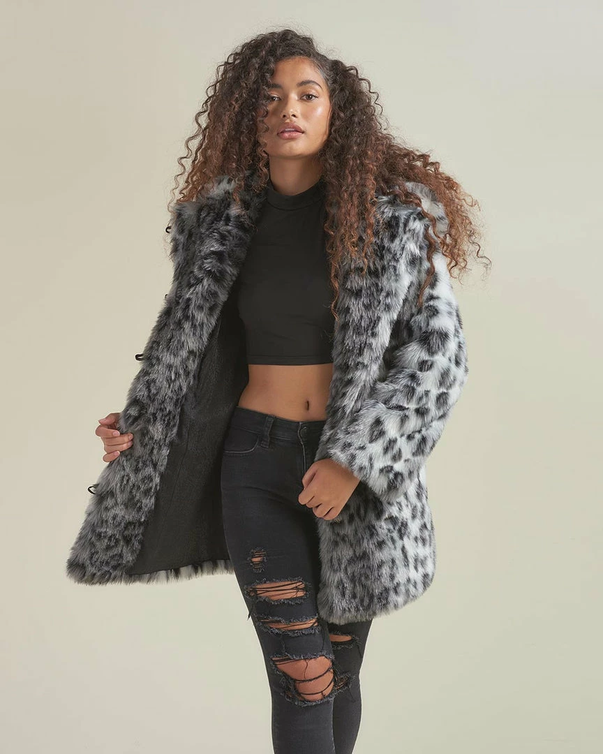 Play in the snow or run wild at your next big festival in our gorgeous grey Snow Leopard Faux Fur Coat! Purrrfect for animals who love everything leopard print but want something just a little more unique than the usual brown leopard or snow leopard styles.