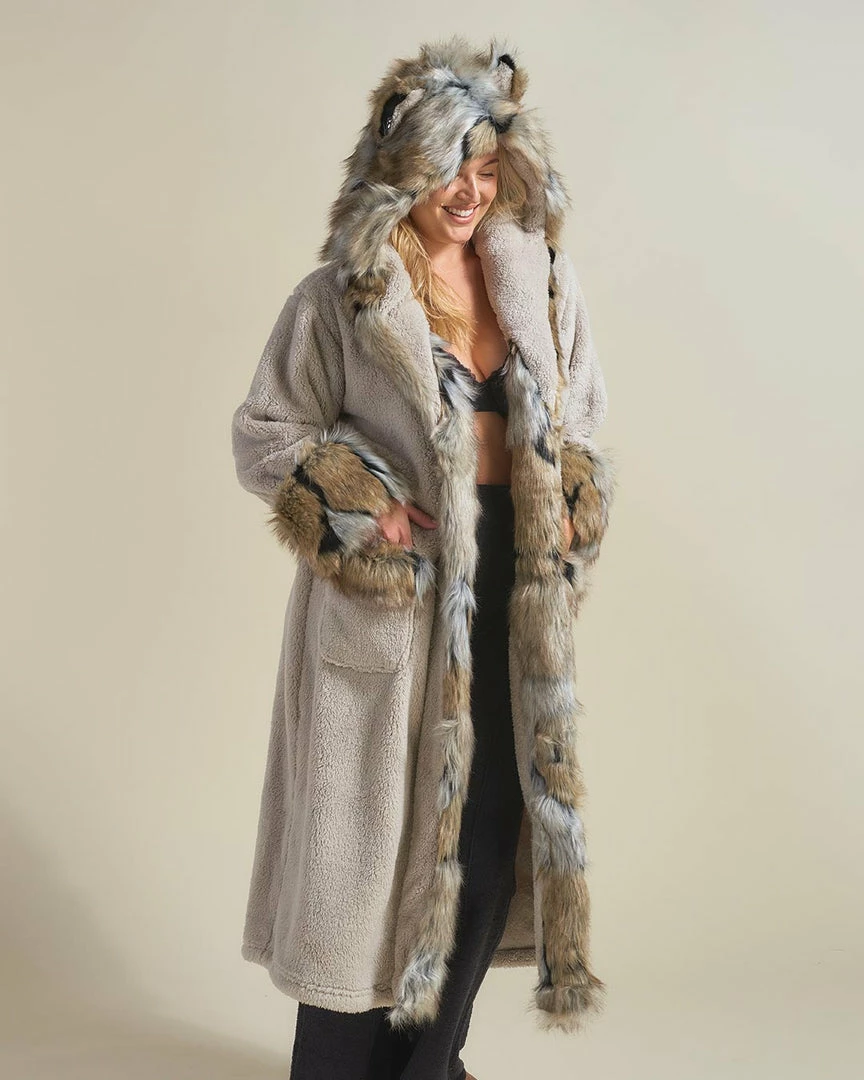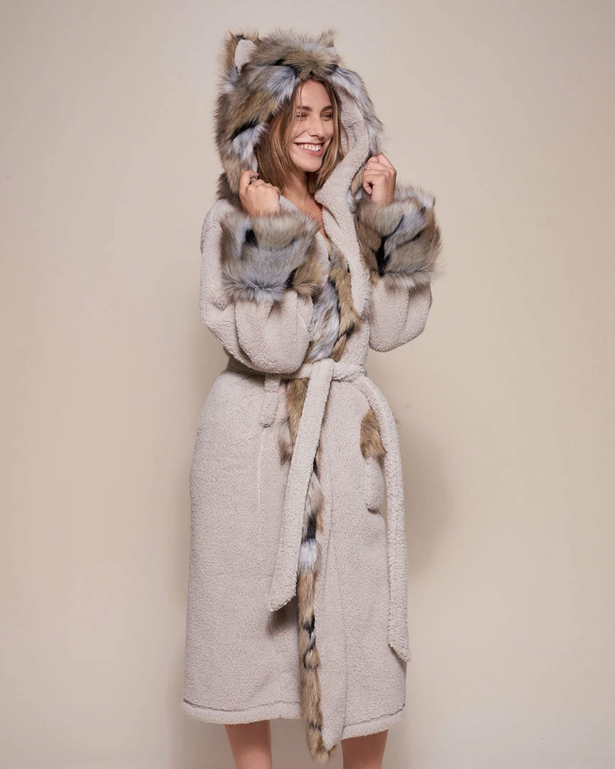 Get ready to lounge in fierce style – order your Wolverine Classic Faux Fur Robe for women today!